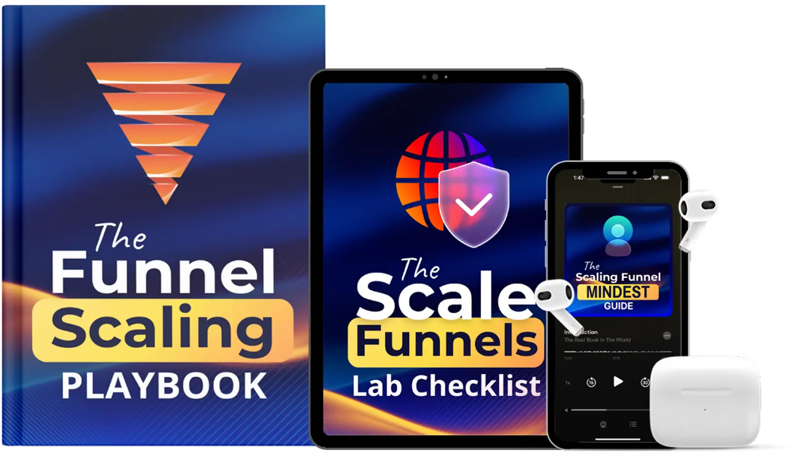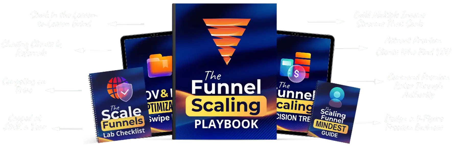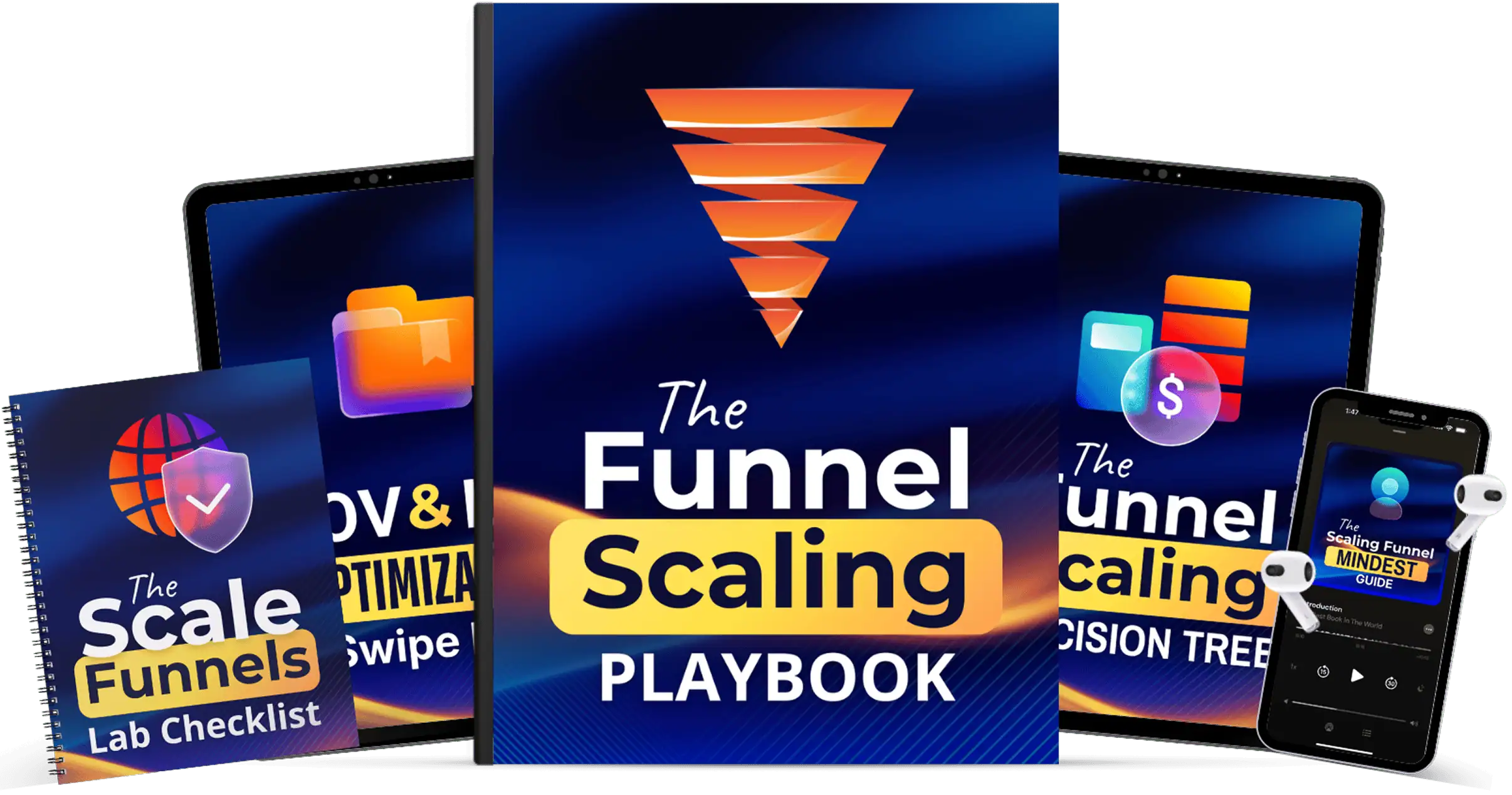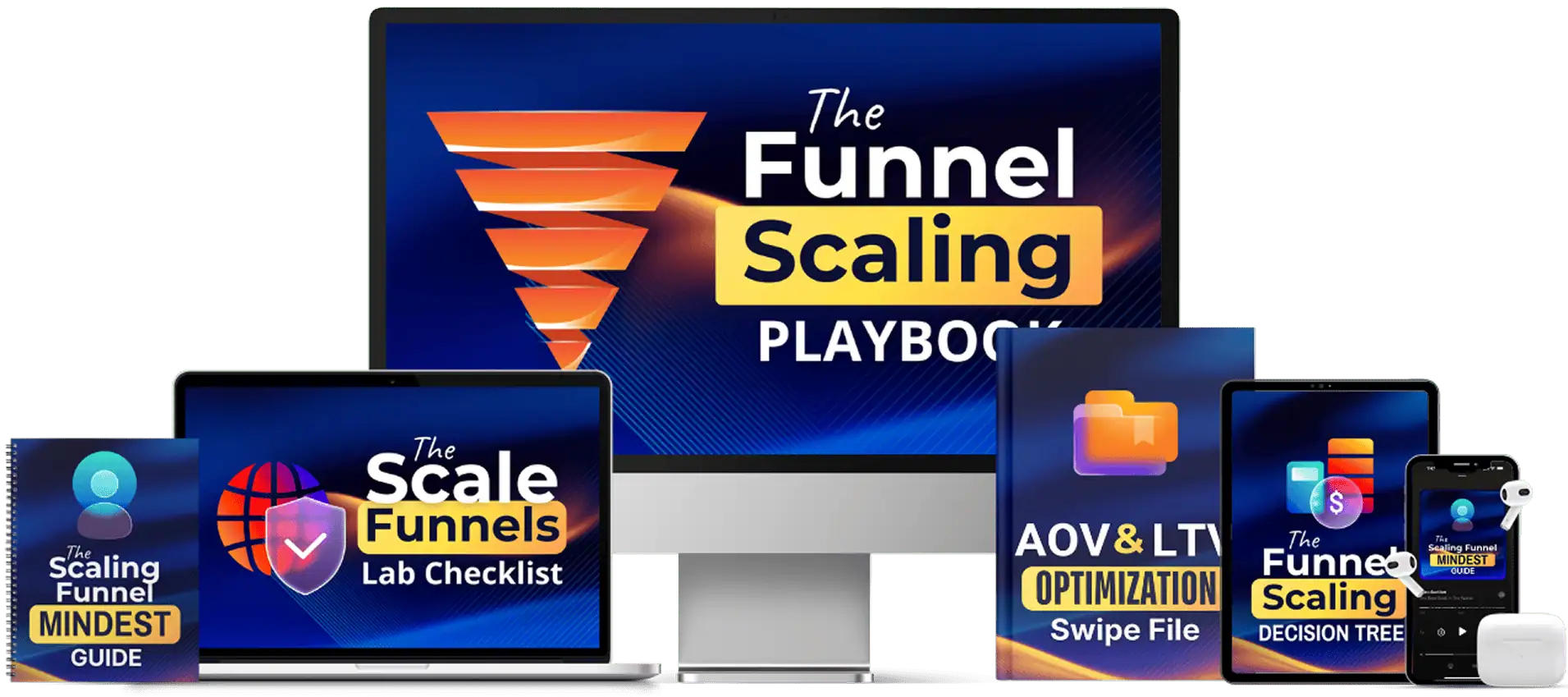 You're getting The Funnel Scaling Playbook, the Scale Funnels Lab Checklist, the AOV and LTV Optimization Swipe File, the Funnel Scaling Decision Tree, and the Scaling Funnel Mindset Guide. All delivered instantly.